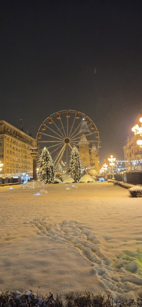 Am intrat în Starbucks să-mi iau o cafea. Mi-am pus paharul pe o masă acoperită de zăpadă. Și atunci i-am văzut: oameni în paltoane lungi și umbrele, făcându-și drumul spre operă prin ninsoare. Preț de o clipă, timpul s-a oprit. Prezentul s-a retras. Și am rămas blocată în imaginea aceea, cu personaje îmbrăcate elegant gravitând printre fulgi și lumini spre muzică. În acea clipă, Timișoara mi s-a părut mai frumoasă ca niciodată.