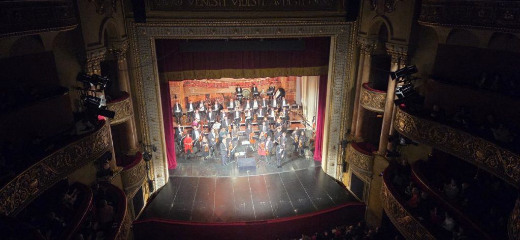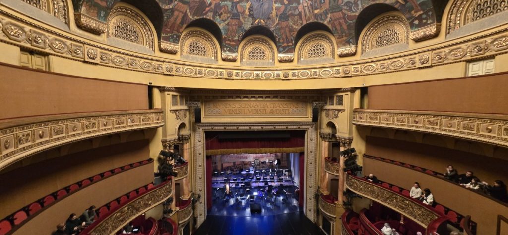 De la galerie, Opera ți se arată altfel. Privirea îți curge, de la balcoanele aurite, la siluetele de pe tavan. Apoi jos, către scenă și către public. Te simți mic, dar paradoxal, parte din ceva mai mare.