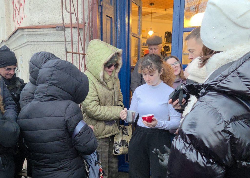 Primul – pauza de la Narativ. Genius! Iubesc cafeaua oricum. Dar la -5 grade și gheață, cuvintele magice ”ne oprim la o cafea” au fost motivația de care aveam nevoie. Tălpile mele au prins aripi la propriu.