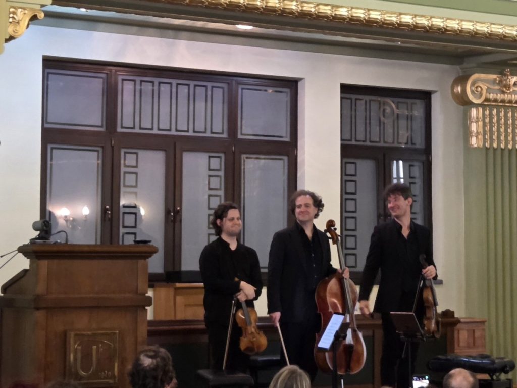 Evenimentul a adus în prim-plan un trio mai puțin cunoscut: Vlad Popescu la vioară, Sascha Bota la violă și Julian Arp la violoncel. Rezultatul: o combinație frumoasă între talent, entuziasm, o doză bună de modestie și o dorință evidentă de a-l onora pe Kurtag.