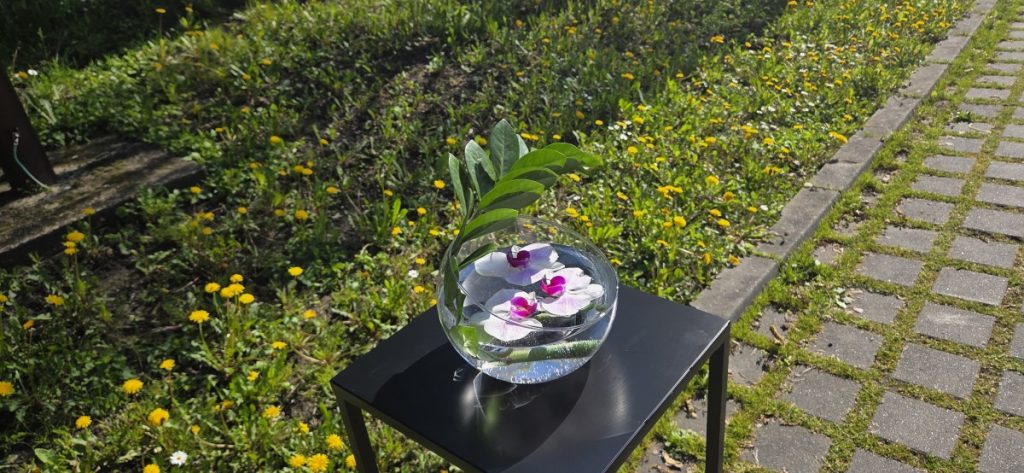Fix antipatia mea față de aglomerație a sfârșit prin a-mi oferi cele mai frumoase experiențe din acea zi. Puțin în afara zonei de standuri au fost expuse aranjamente florale. Oamenii se îngrămădeau, previzibil, la ateliere. Așa că am avut ocazia să admir în liniște florile și să apreciez sensibilitatea creațiilor. Știam că japonezii apreciază simplitatea. Până în acel moment nu mi-a fost clar cât de sofisticată poate fi acea simplitate.